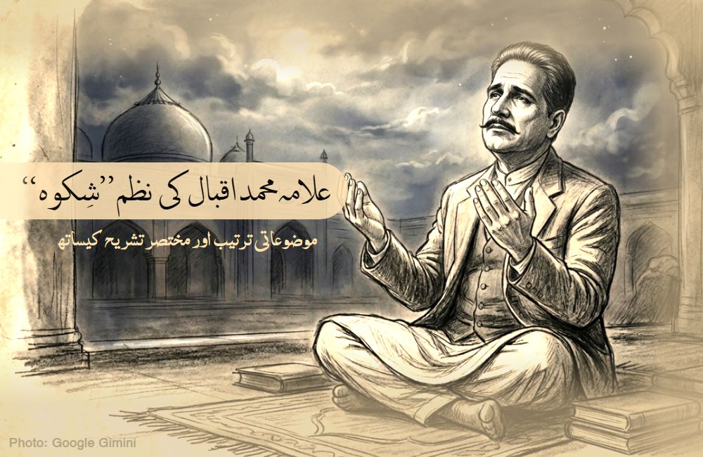 علامہ محمد اقبال کی نظم ’’شِکوَہ‘‘ موضوعاتی ترتیب اور مختصر تشریح کے ساتھ